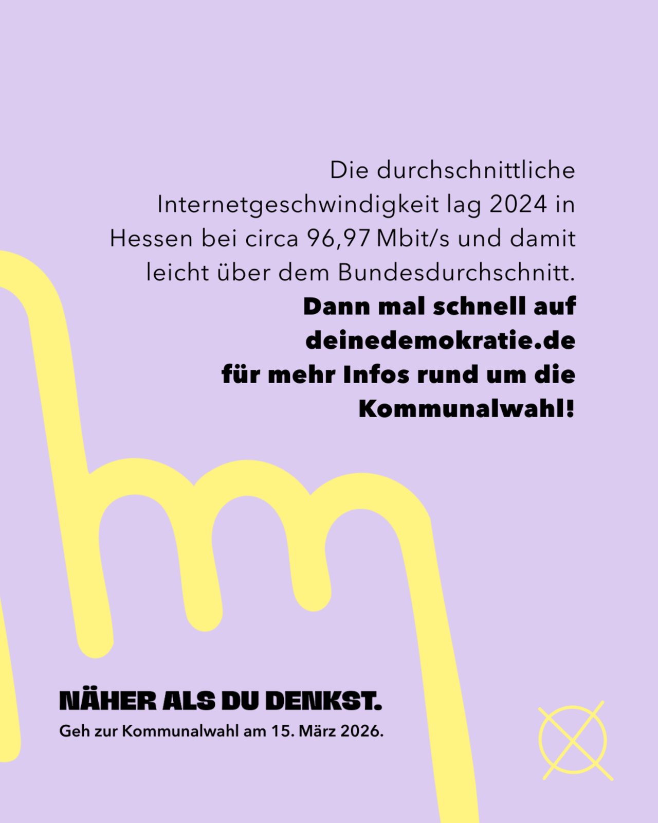 Das Internet in Deutschland ist lahm? Nicht in Hessen! Hier kommst Du schnell an alle Infos, die Du brauchst – auch zur Kommunalwahl 2026! Schau vorbei auf www.deinedemokratie.de