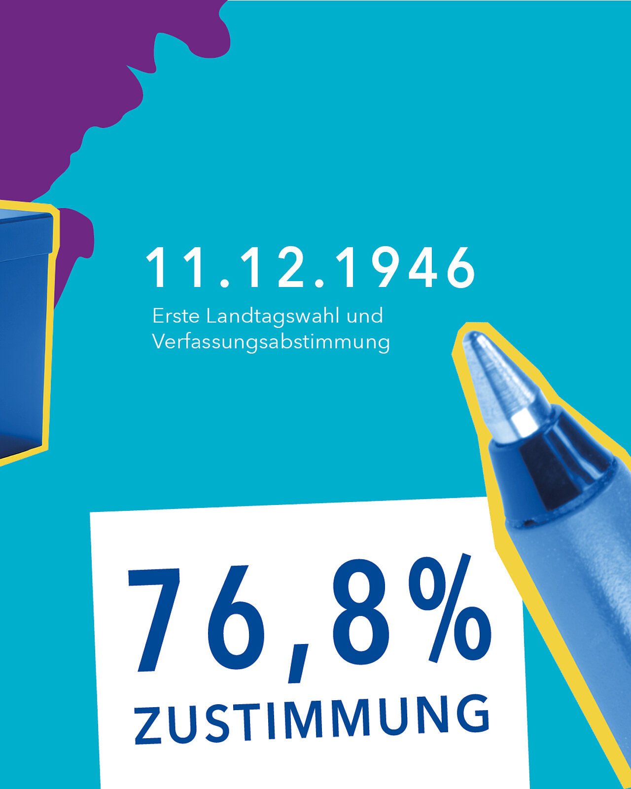 👉 Am 1. Dezember 1946 sagten 76,8 % der Hess:innen Ja zur Verfassung. Hessen war damit das erste