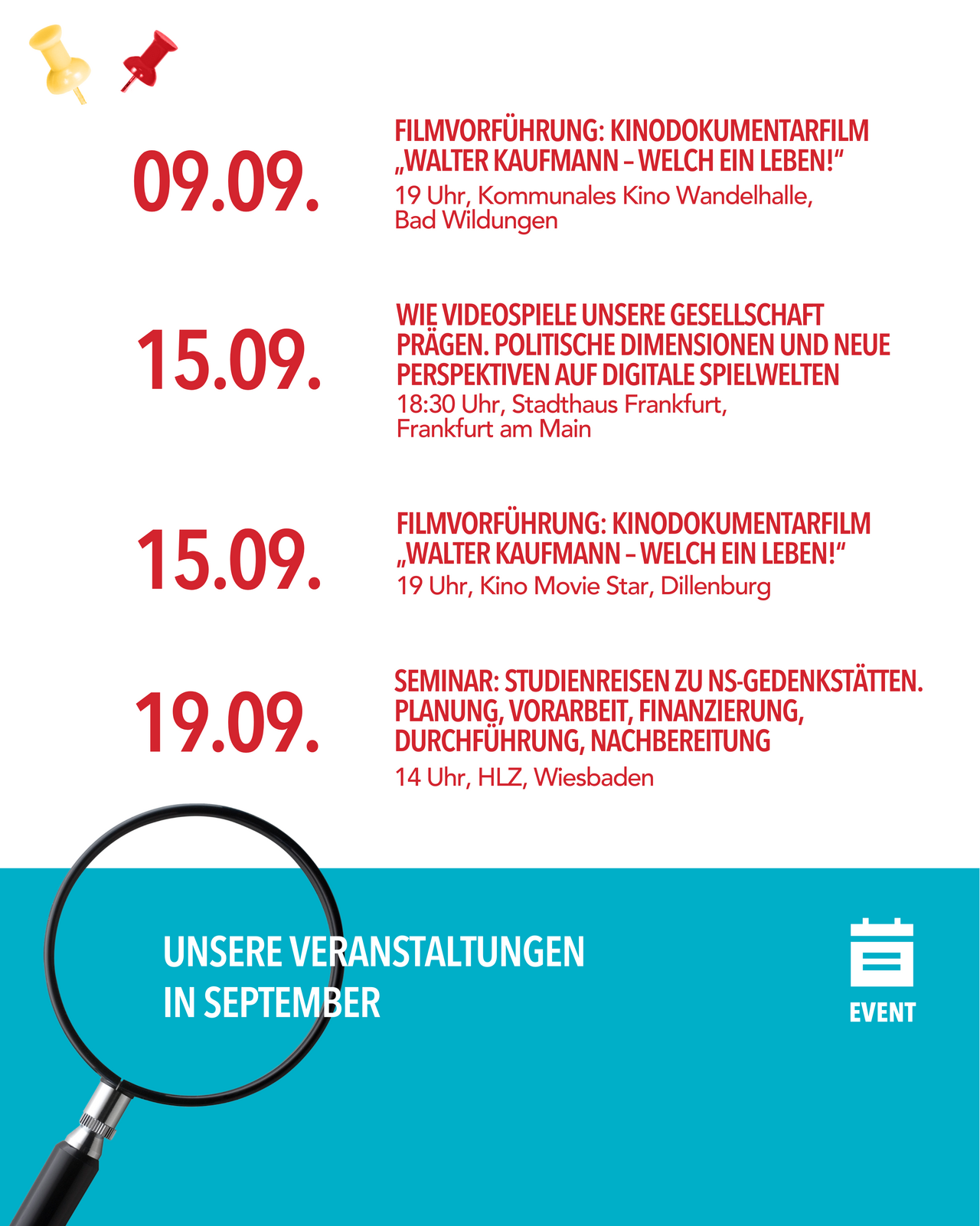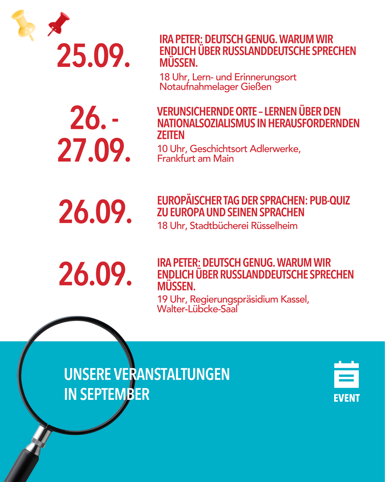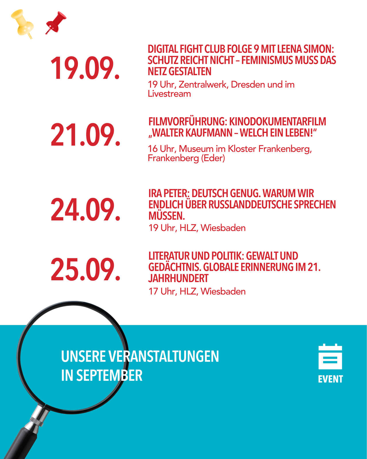 Unsere Veranstaltungen im September - schaut doch mal vorbei, wir freuen uns auf euch! Mehr Infos findet ihr auf unserer Website.